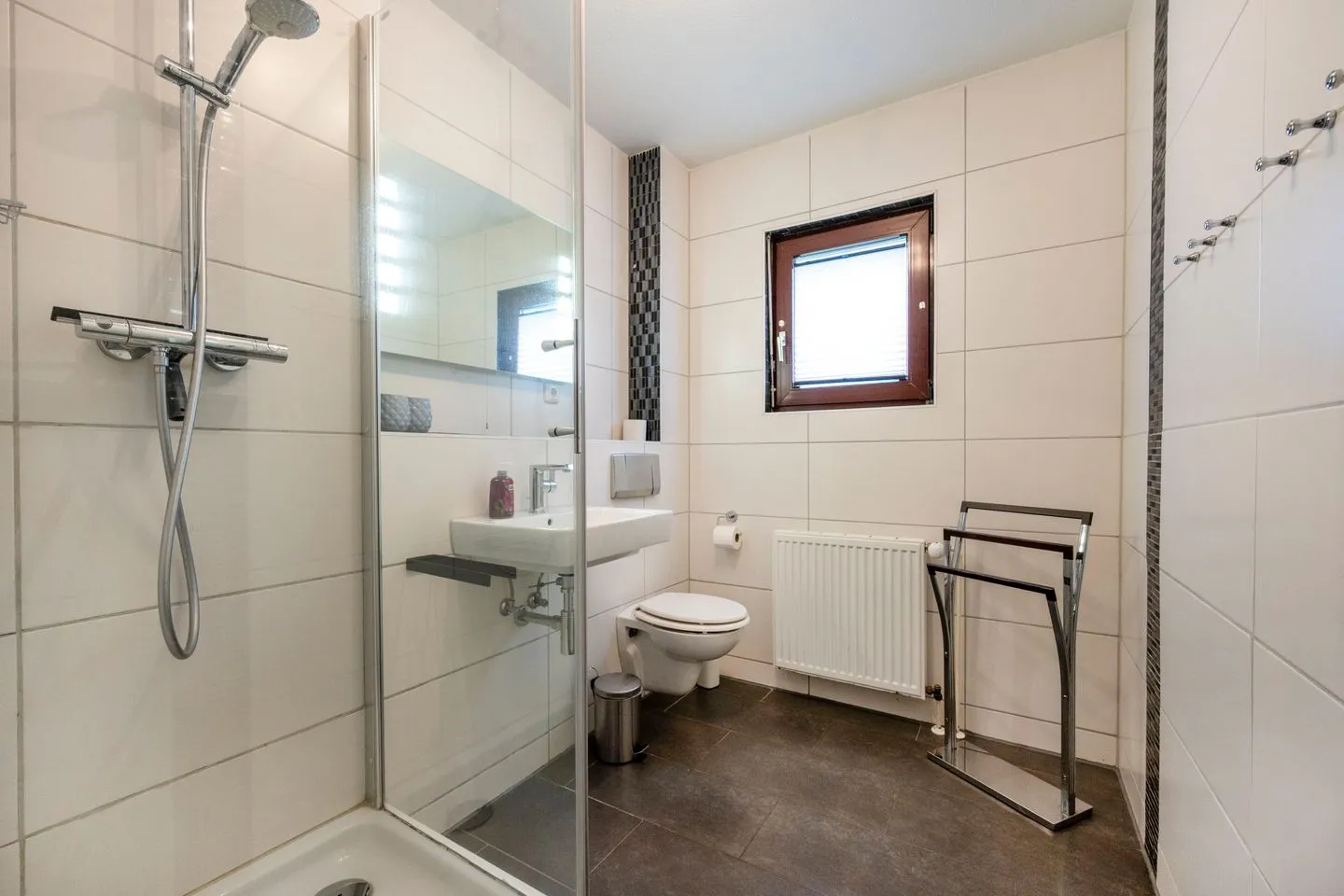Das große Badezimmer verfügt über eine Badewanne und lädt zu einem Schaumbad ein.