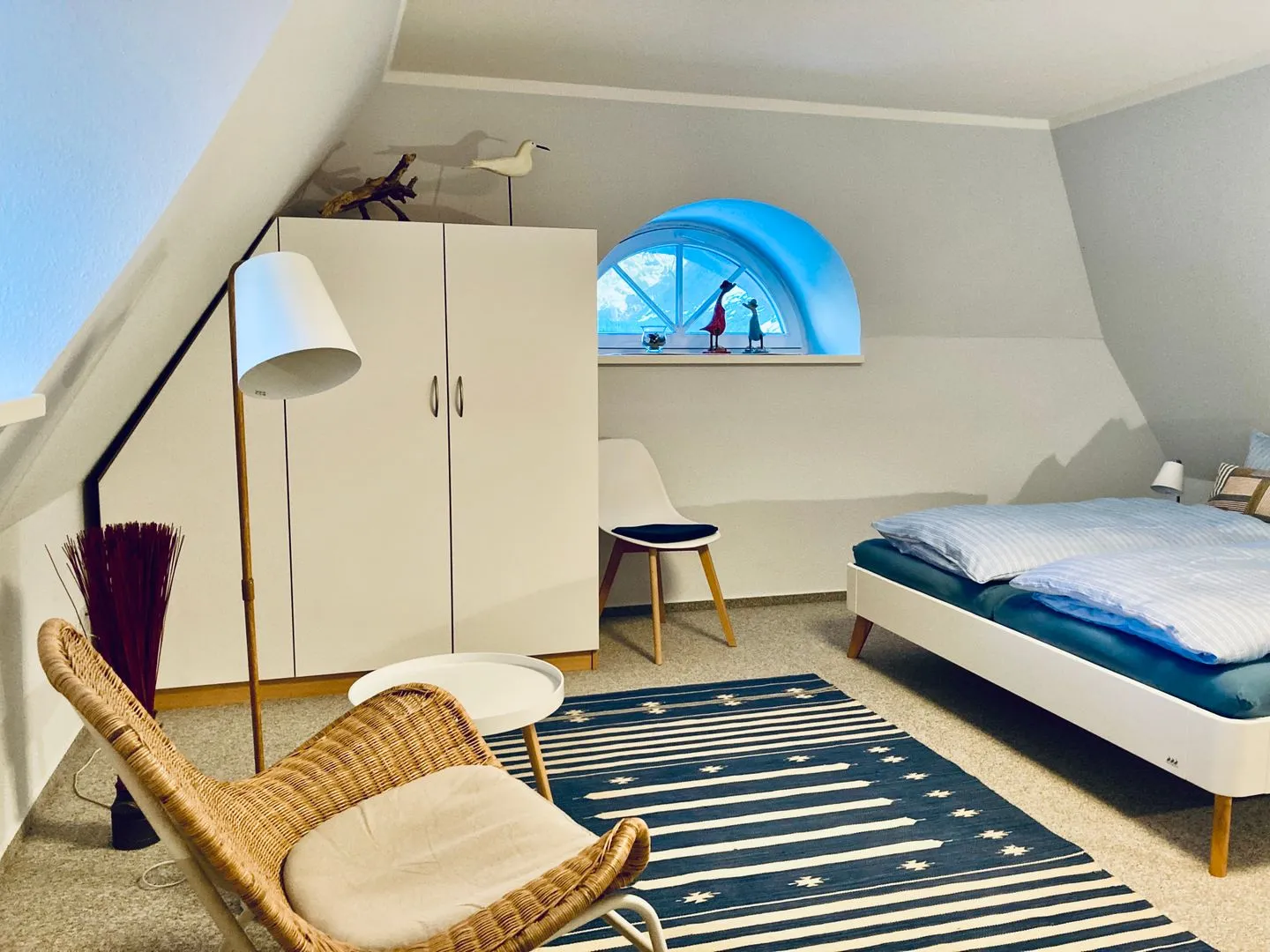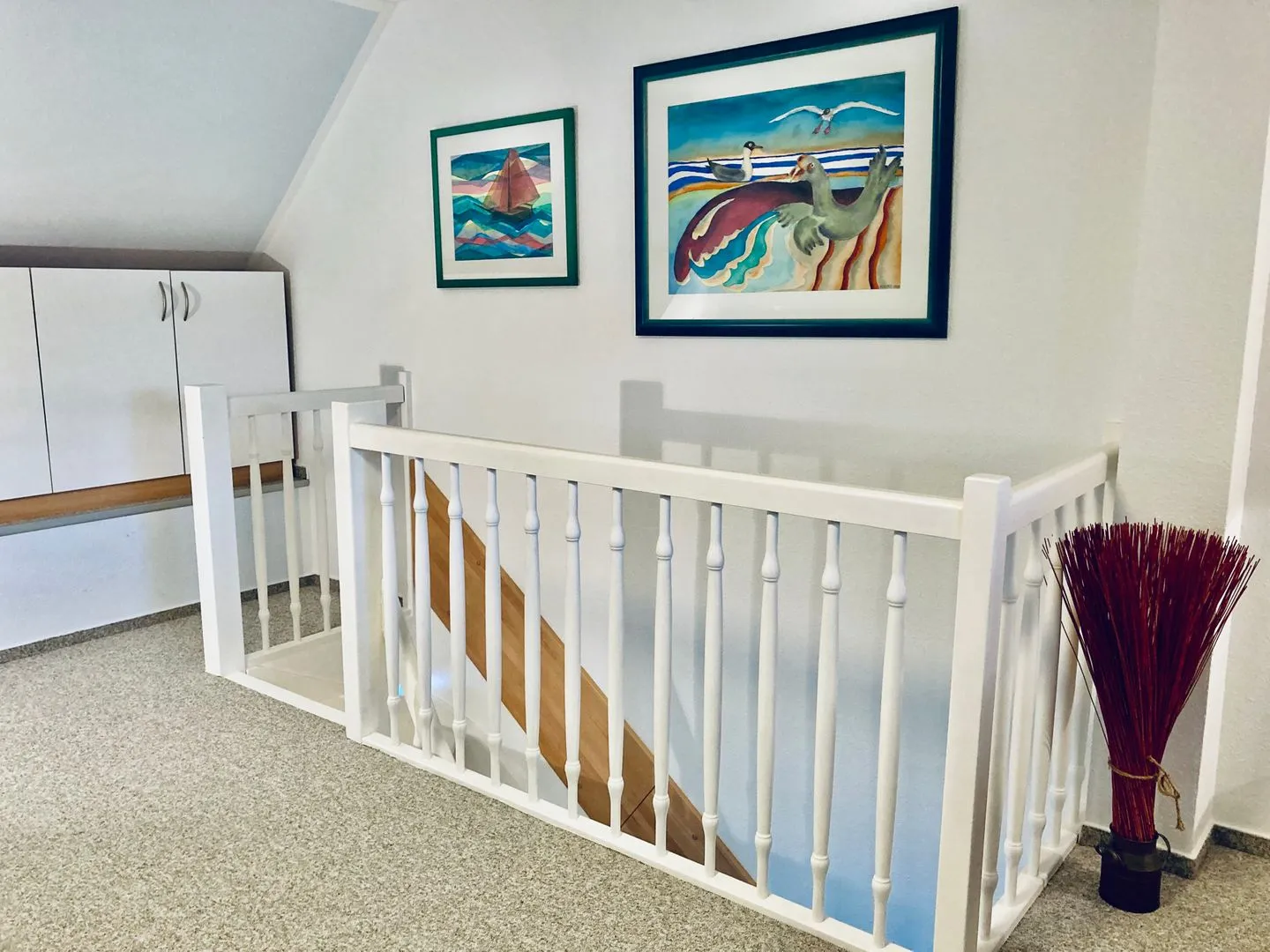 Außerdem befinden sich auf dieser Etage ein Badezimmer mit Dusche sowie ein kleiner Schlafraum mit zwei Einzelbetten.