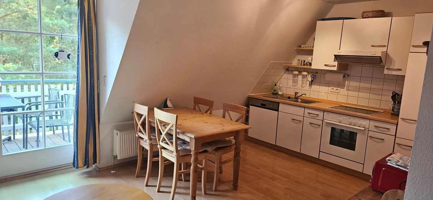 Die Ferienwohnung Achtern Diek Achtern Diek 12b - Wohnung 6 im Ostseebad Zingst bietet auf 55 m² angenehmen Komfort für bis zu 4 Personen. Die Nichtraucher-Unterkunft liegt in einer Ferienanlage in erster Reihe am Strand – Meer und Strand erreichen Sie in nur 100 m. Die Wohnung befindet sich im 1. Stock und erstreckt sich über 2 Etagen, ideal für alle, die Wohnen und Schlafen gerne etwas separieren. Familien, Babys und Kinder sind willkommen; zudem ist die Unterkunft allergikerfreundlich ausgestattet.